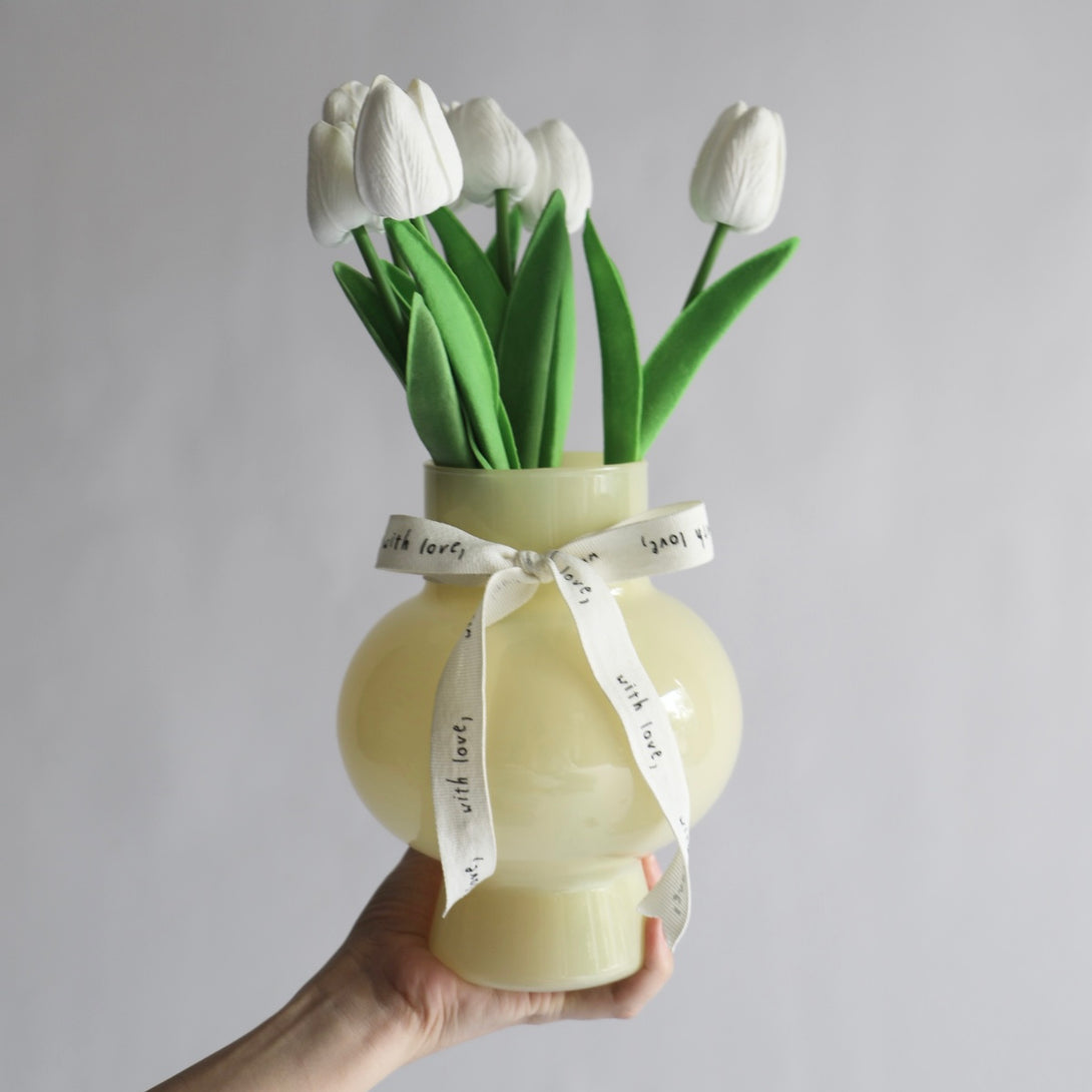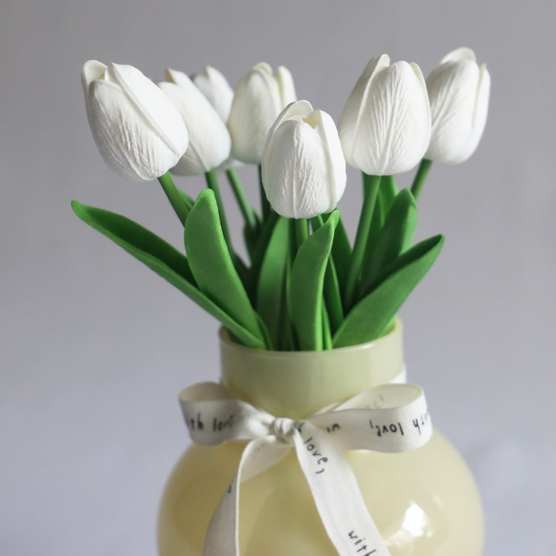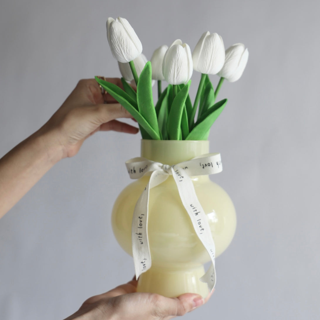 select your preferred style: a tulip bunch wrapped in brown paper without a vase, or a ready-to-display tulip arrangement with a vase.